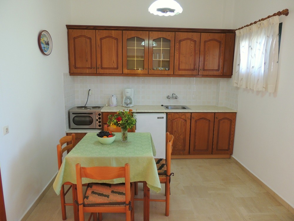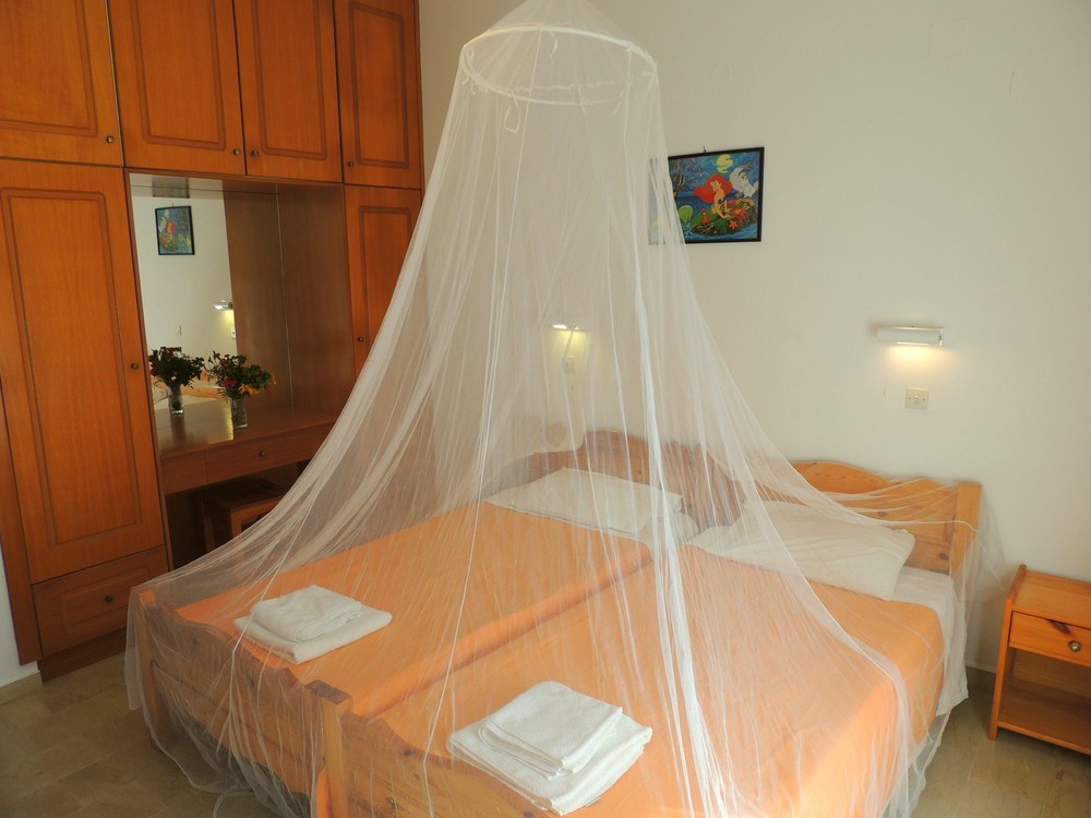 There is a fully equipped kitchen for meals and breakfast in each apartment as well a hair dryer and mosquito nets over the beds. There is plenty of parking space at the back of the building, and in the front of the house there is lawn, covered by trees, ideal to relax. There are also a couple of swings and a see - saw for our young guests.