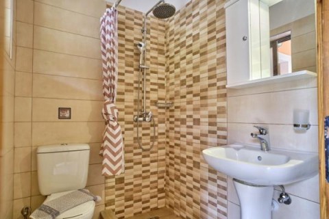 The apartments themselves are nice and spacious enough. Certainly not luxurious but very good value for money. The one-bedroom apartments consist of a bedroom, a kitchen with a dining space, a bathroom with shower and a balcony. One of the apts on the top floor even has a sea view! Towels and bed linen are changed three times a week. All apartments have a tv and air conditioning included in the price.