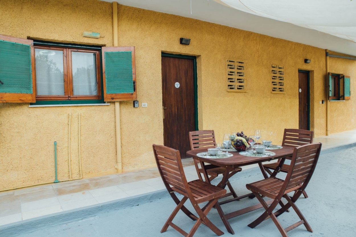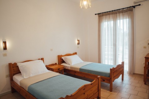The apartments are on the ground floor. Each one has two bedrooms, a bathroom, a fully equipped kitchen, a balcony on the front side and lovely place on the back side that you can relax, read a book, have your breakfast etc.