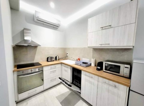These are both one-bedroom-apartments equipped with a fully functioning kitchen, a nice spacious bathroom, free wifi, Air-conditoning, TV, Espresso machine, hairdryer, dishwasher, microwave, kettle, toaster.