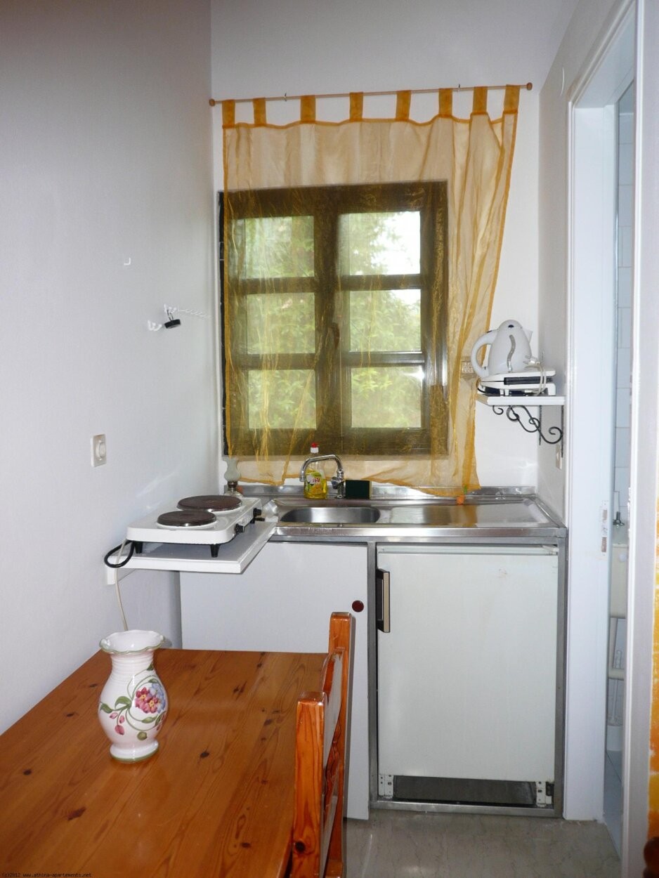 The kitchenette contains all utensils for the preparation of a breakfast or a simple meal and of course, refrigerator, sink and dining table with two chairs.