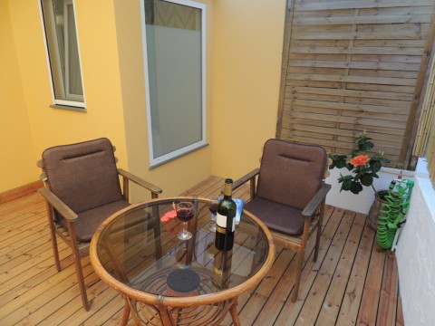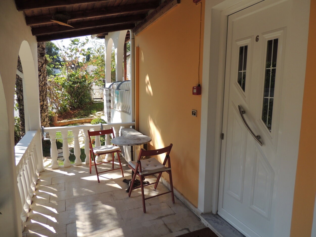 Directly from the front yard five steps lead up to 7,2sqm large veranda which is shared by the neighbouring studio "Kosta" as you can see at the photos.