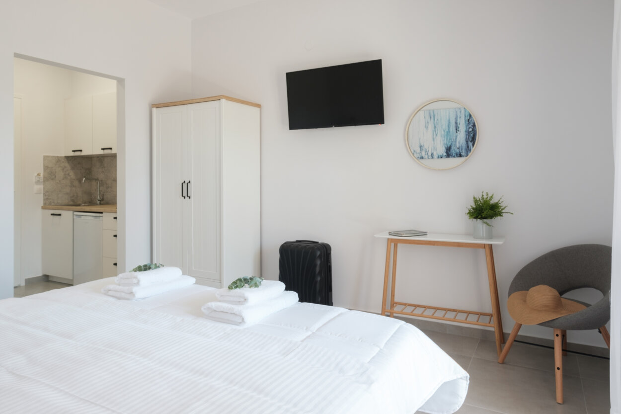 Casa Campos Arillas is a place of beauty and relaxation. The big garden is ideal for families  and carefree moments. It has rooms for 2, 3 and 4 people with a fully equipped kitchen, fridge, bathroom, air conditioning and everything you need. From the balconies you can enjoy the wonderful sunset. The distance from the beach is 600m and close to it, is the Gayatri Mandir. On the main road on the beach you can find many restaurants, cafe's and mini markets. Also you can walk to the neighbouring villages of Agios Stefanos, Afionas,Agios Georgios and Porto Timoni beach. Every minute of that holiday is a new experience of your life! The Climate Resilience Tax is not included in the price and it will be paid upon arrival . For 2025 is 2 euros per night for the studio.