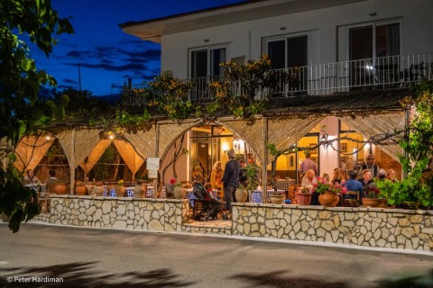 Discerning guests don't look at the menu but ask Dimitris, the owner, what he has today. Special delicacies are stifado, spit roasted lamb, bourdeto, bianco, stuffed pork roll, zucchini balls and a variety of local typical vegetarian dishes that are presented randomly through the days of the week. Many of the dishes are gluten-free!