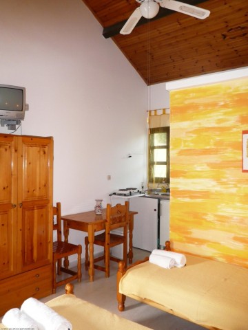 The kitchenette contains all utensils for the preparation of a breakfast or a simple meal and of course, refrigerator, sink and dining table with two chairs.