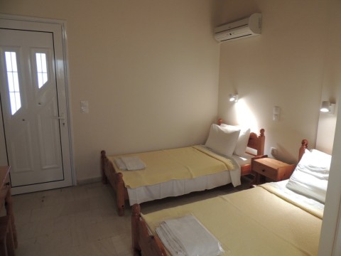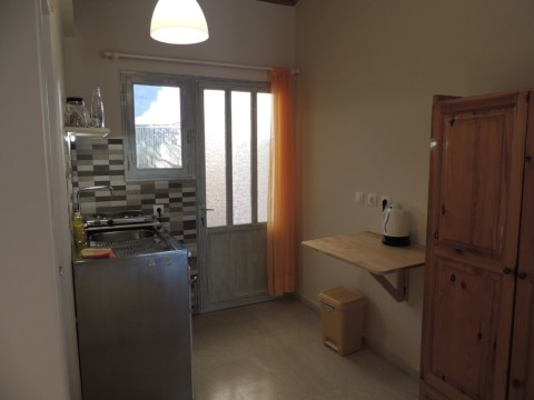 "Fofo" on compact 17sqm provides everything a person or a couple needs on holiday. This studio has two single beds, wardrobe, dressing table, bedside table and a kitchenette with all utensils for breakfast or a simple meal. You can sit inside on a small folding table or in front of the balcony and at the rear new designed a bigger veranda which is framed from the neighbours by oleander bushes. In summer a sun-sail spends shadow.