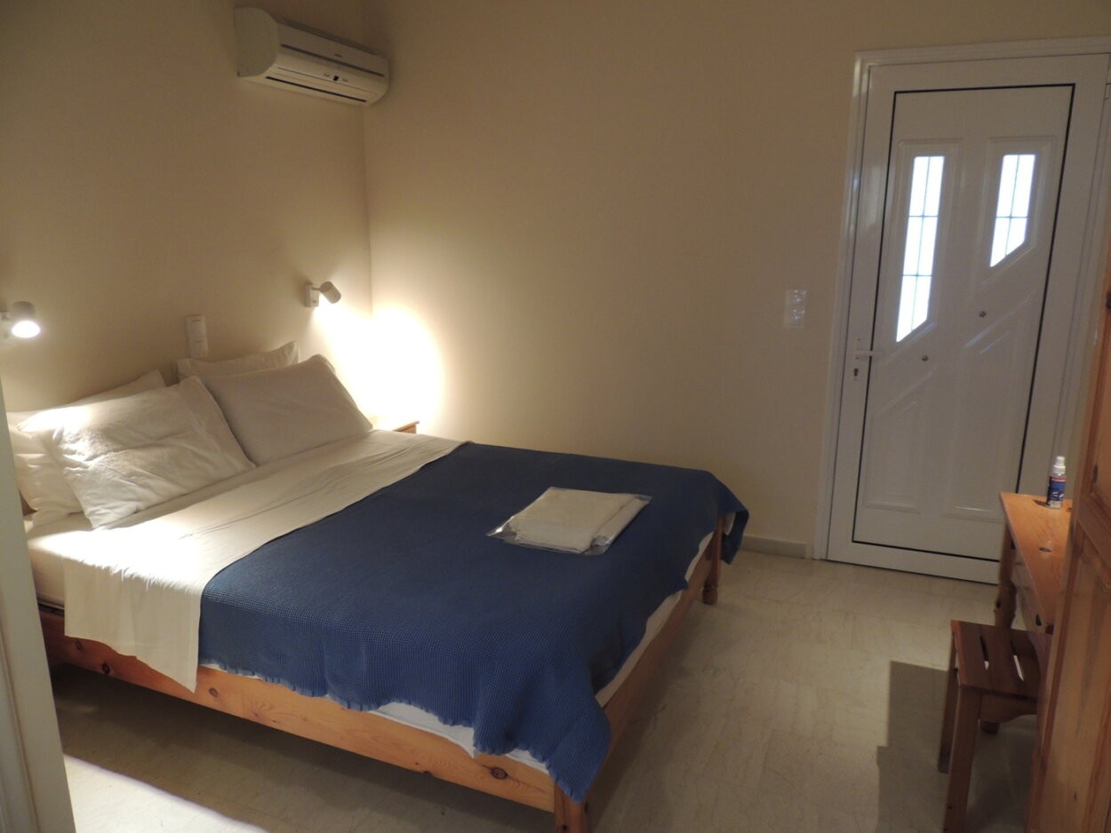 "Kosta" on compact 17sqm provides everything a person or a couple needs on holyday. This studio has a double bed, wardrobe, dressing table, bedside table and a kitchenette with all utensils for breakfast or a simple meal.