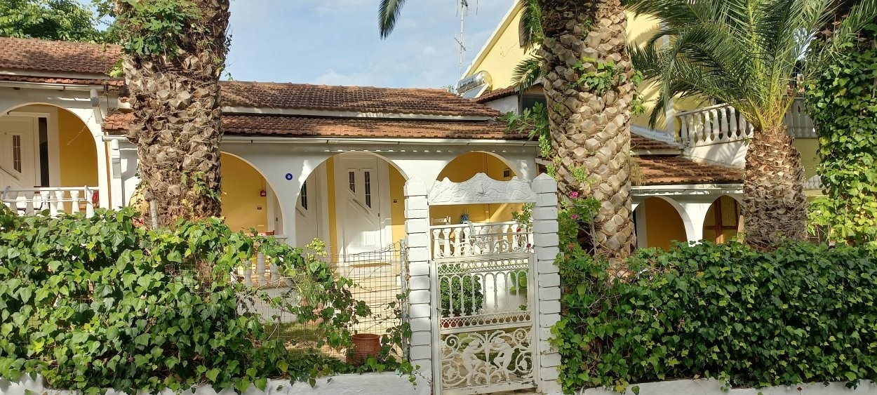 Directly from the front yard five steps lead up to 7,2sqm large veranda which is shared by the neighboring studio "Fofo" as you can see at the photos.