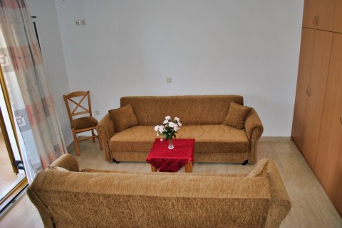 This two-floored family room can accommodate up to 5 people and is equipped with all the amenities you need for a comfortable stay. The room features a kitchen, a living room with sofa beds, and a dining area, so you can enjoy meals and relaxation in the comfort of your own space. The room is self-catering, so you'll have everything you need to prepare your own meals, including a refrigerator and microwave.