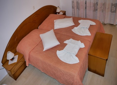 Our Premium One Bedroom Apartment is located on the top floor of the third building, offering beautiful views of the surrounding nature and olive trees. This spacious and modern apartment is situated in a peaceful and private setting, facing the resort's gardens. It features two single beds, a fully-equipped kitchen, and a bathroom with a shower.